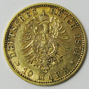 Tyskland, Wilhelm, 10 mark GULD 1874 - KM 1235