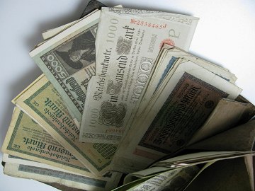 Danmarks fedeste tegnedreng, indeholdende sedler på 227.632.506 Reichsmark fra inflationstiden. I alt 109 sedler.