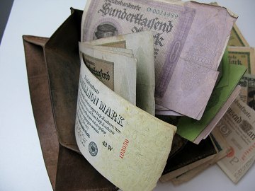 Danmarks fedeste tegnedreng, indeholdende sedler på 227.632.506 Reichsmark fra inflationstiden. I alt 109 sedler.