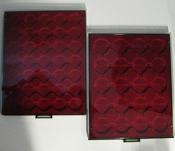2 Lindner møntbakker til mønter med henholdsvis 30 mm. og 40 mm. i diam.