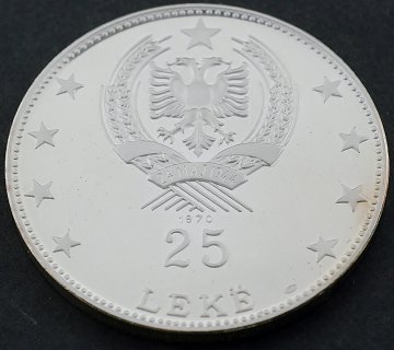 Albanien, 25 lekë FINSØLV 1970 Proof - KM 52.3