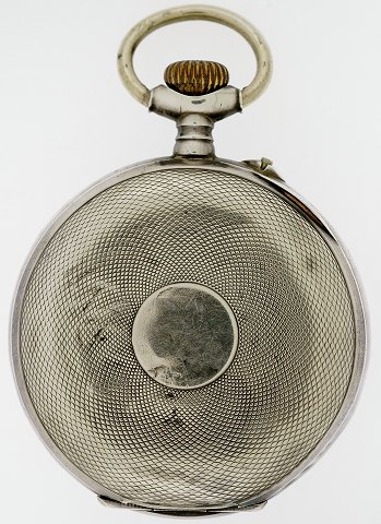Sjælden schweizisk herrelommeur i kasse af sølv, farvet og delvist forgyldt emaljeskive m. romertal, 8 dags værk, ca. 1913. Ø. 49 mm.