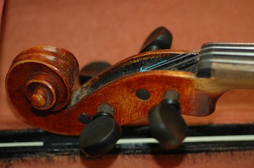 Flot nyrenoveret violin i kasse af lakeret træ m. nye udskiftede dele, bl.a. ny stol og strenge. Udført som kopi efter en violin af Antonius Stradivarius Cremonensis.