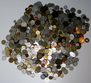 Samling mønter fra hele verden, i alt. ca. 4,5 kg.