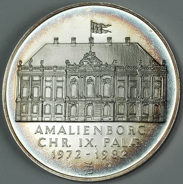 Sølvmedaille præget i anledning af Dronning Margrethe II's regentjubilæum 1972-1982.