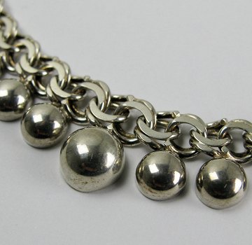 Hermann Siersbøl collier af sterling sølv i form af Bismarck kæde prydet med halvkugleformede perler i forløb. L. ca. 46 cm.