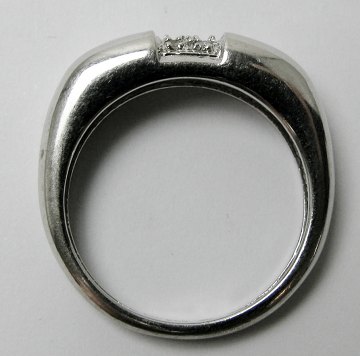 Design ring af 14 kt. hvidguld, skinne prydet med diamantbesat segment med 5 diamanter, tilsammen ca. 0,02 ct. Str. 56, samlet vægt ca. 4 gr.