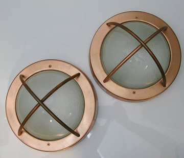 Par tyske "München" kvalitets udendørslamper af kobber med nupret opalineglas. Diam. 25 cm., Sokkel E-27 max 60 Watt. Sparepære kan anvendes.