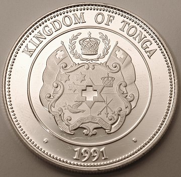 Tonga, pa´anga SØLV 1991 - KM 143 *William Schouter & Jokob Le Maire*