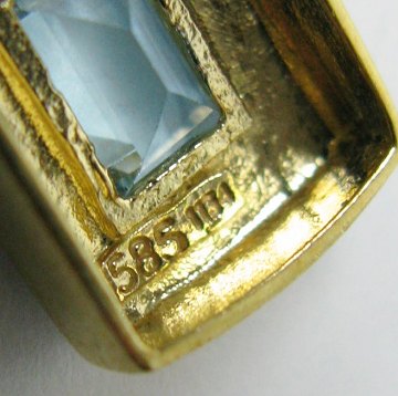 Vedhæng af 14 kt. tofarvet GULD med aquamarinfarvet sten