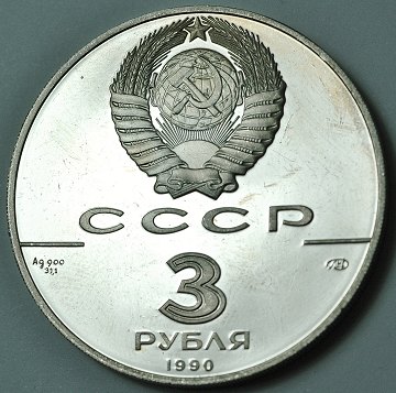 Rusland, 3 rubler SØLV 1990 Proof - Y# 242