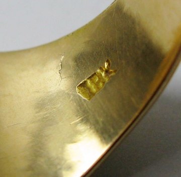 Darius ring af 18 kt. guld, rigt dekoreret med kongesymbol og ornamentik på sort emailleret baggrund. Str. 63, vægt ca. 13,5 gr.