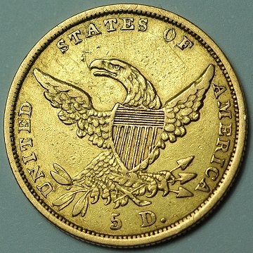 5 dollar GULD 1836 - sjælden type kun præget i 4 år fra 1834-38. Dette årstal er lidt mere ualmindeligt og kun præget i ca. 550.000 stk