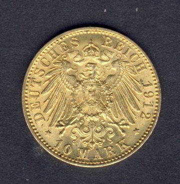 Preussen, 10 mark GULD 1912 - Lidt udover det normale