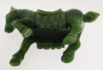 Smuk figur af udskåret mørkegrøn jade, udført som sadlet hest, Kina 19./20. årh. L. 7,5 cm.