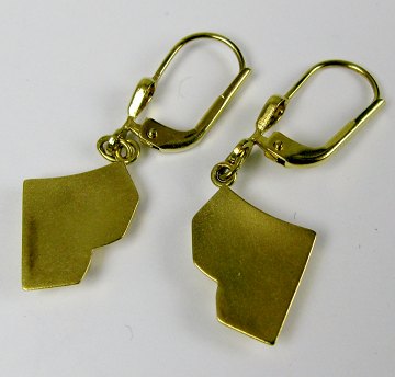 Par ørelogger af 8 kt. guld, hver med perspektivformet vedhæng, delvis matteret. Totallængde ca. 30 mm., vægt ca. 1,7 gr.