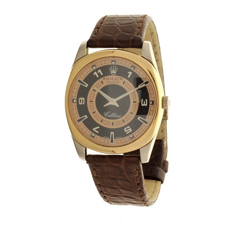 Herrearmbåndsur fra Rolex, model Cellini Danaos, ref.nr.: 4243, K-serie, i kasse af 18 kt. rød-og hvidguld, kobberfarvet skive m. sorte elementer, arabertal og punktindeks, monteret m. kroko-læderrem m. original Rolex spænde i 18 kt. hvidguld, safirglas, manuelt urværk. Ø. 38 mm.