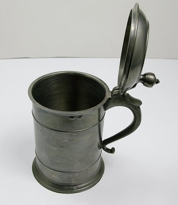 Lågkrus af tin, monteret m. engelsk mønt, 20. årh.s første halvdel. H. 16,5 cm.