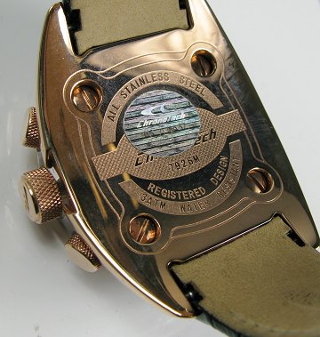 Chrontech Chronograph herrearmbåndsur i kasse af blankpoleret, kobberfarvet stål. Metalfarvet skive i hudfarvet ramme med stregindikationer, datovisning mellem #3 og #4 positionen, central sekundviser og chronometerfunktioner. Quartzværk. Læderrem med metalspænde. Urkasse Diam. ca. 46 mm. Original salgsæske og certifikat fra Rolex forhandler medfølger.