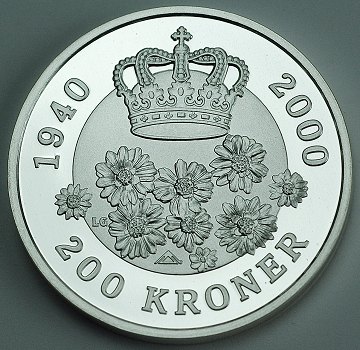200 kr FINSØLV 2000 LG - Margrethe II 60-års fødselsdag
