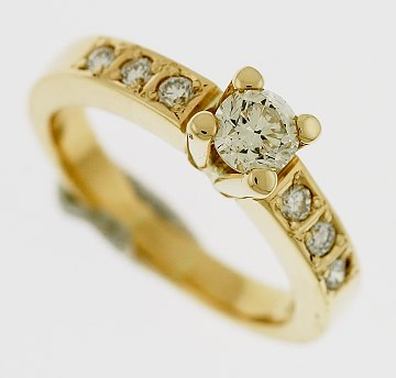 Ring af 14 kt. GULD, prydet m. brillanter på ca. 0,58 ct.