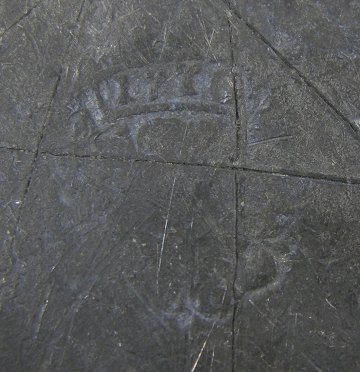 4 antikke 1700'tals tallerkener af tin, fortil stemplet AG 1775, bagsiden utydelig stemplet men med synlig årstalsstempel 1770. Diam. ca. 25 cm.