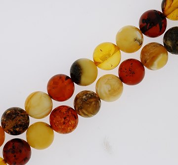 Ravperlekæde m. talrige forskelligartede slebne ravperler