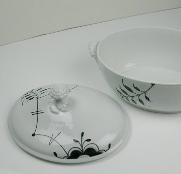 Royal Copenhagen, oval sort Mega Mussel terrin, dess. 182 med låg dess. 183. L. ca. 30 cm.