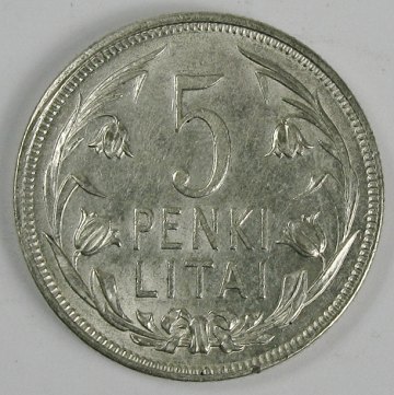 Lithauen, 5 Penki Litai SØLV - 1925 - KM 78