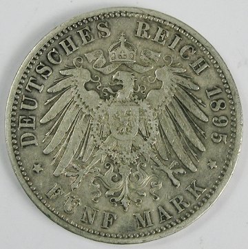 Preussen, Wilhelm II, 5 mark SØLV 1895 - KM 523