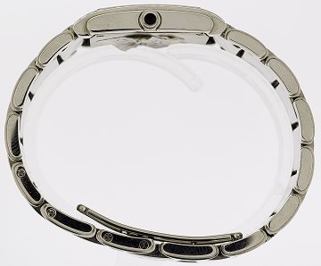 Damearmbåndsur fra Patek Philippe, model Twenty-4, i kasse og m. lænke af stål, sølvfarvet skive m. 10 brillantslebne diamanter og romertal, urkassen er ligeledes prydet m. brillantslebne diamanter, krone m. safir, safirglas, quartzurværk. Ø. 25x30 mm.
