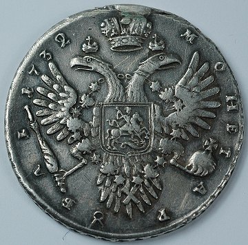 Smuk mønt, præget under tsarina Anna, der dog fremstår m. monteringsspor.