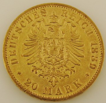 Preussen, 20 mark GULD Wilhelm II 1889 A - KM 516