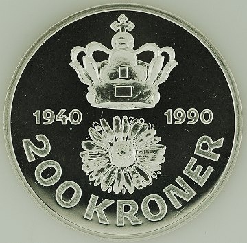 200 kr FINSØLV 1990 - Dronningens 50 års fødselsdag