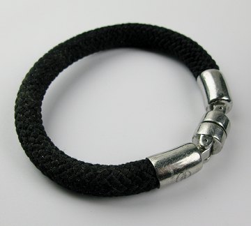Jacob Jensen ur i kasse af metal, Diam. ca. 35 mm., med tofarvet skive, central sekundviser og datovisning ud for #3 positionen. ETA værk. Gummilænke med metalspænde. Ydermere medfølger en POLICE armlænke af tætflettet snøre med kraftig magnetlukke af poleret stål. L. ca. 21 cm.