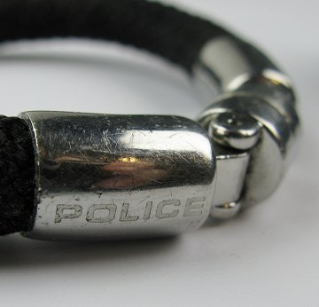 Jacob Jensen ur i kasse af metal, Diam. ca. 35 mm., med tofarvet skive, central sekundviser og datovisning ud for #3 positionen. ETA værk. Gummilænke med metalspænde. Ydermere medfølger en POLICE armlænke af tætflettet snøre med kraftig magnetlukke af poleret stål. L. ca. 21 cm.