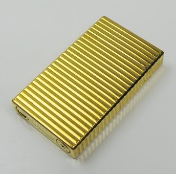 S.T. Dupont Paris, lighter af forgyldt metal med flintesten gnisttænding. Model 1 G 5 CV 34. 53 x 30 x 7 mm. Original salgsæke samt læderetui, garantioplysninger, certifikat og brugsvejledning medfølger.