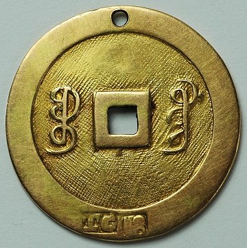 Interessant guldafstøbning efter kinesisk mønt, udført i 18 kt. guld, stemplet "TC" for Thora Christiansen, ca. 1907-37 Ø. 29 mm.