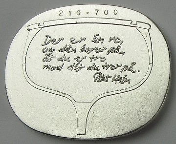 Præget m. skoleskibet Fulton på fs. og et vers af Piet Hein på bs, der lyder: "Der er én ro, og dén beror på, at du er tro mod det du tror på".