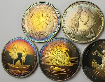 Samling medailler af sølv, præget i erindring om vor store nationaldigter, H.C. Andersen i et begrænset oplag på kun 1.000 eksemplarer af hver.