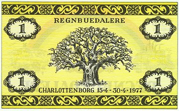I forbindelse m. festivalen "Kærlighed og Kaos", der blev afholdt på kunstinstitutionen Charlottenborg i 1977, blev der udformet tre "sedler" m. denominationen "regnbuedaler". Overskuddet gik til vedligeholdelse og renovering af Fristaden.