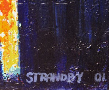 Kenneth Strandby (f. 1960): Signeret composition, dateret 01, acryl på lærred, 90 x 90 cm. På bagsiden forsynet med udstillingsmærkat.