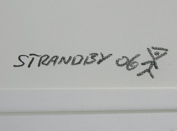 Kenneth Strandby (f. 1960): blyantsigneret genistreg, dateret 06, acryl på lærred, 53 x 48 cm., indrammet med passepartout bag glas.