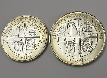 Præget i anledning af 1100-året for islands første bosætning i år 874 f.Kr.