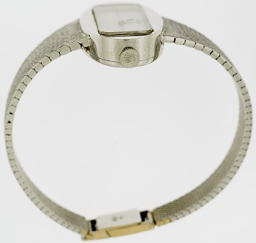 Damearmbåndsur fra Rolex, cal. 1400, i oval kasse og intergreret lænke af 18 kt. guld, satineret sølvfarvet skive, manuelt optræk. 1960´erne. Kassediameter: 19 x 34 mm.