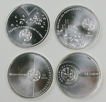 Portugal, 8 euro SØLV 2003(3) og 2004 - KM 750, 751, 752, 757