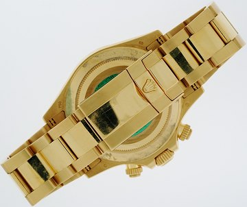 Herrearmbåndsur fra Rolex, model Daytona, ref.nr.: 116528, kronometer i kasse og m. oysterlænke af 18 kt. guld, hvid skive m. stregindeks, automatisk urværk, safirglas, kronograffunktioner. Diam. 40 mm.