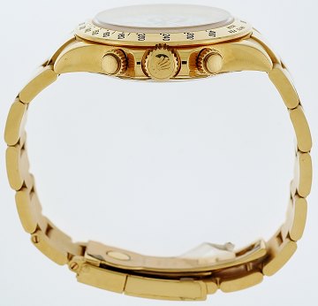Herrearmbåndsur fra Rolex, model Daytona, ref.nr.: 116528, kronometer i kasse og m. oysterlænke af 18 kt. guld, hvid skive m. stregindeks, automatisk urværk, safirglas, kronograffunktioner. Diam. 40 mm.