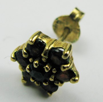 Par granat ørestikkere af forgyldt sterling sølv i form af roset med hver 7 facetslebne granater. Diam. ca. 9 mm.