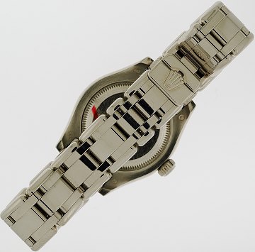 Damearmbåndsur fra Rolex, model Date-Just Pearlmaster, ref.nr.: 80319, i kasse og m. lænke af 18 kt. rhodineret guld, brillantbesat hvid perlemorsskive, lynette af 18 kt. hvidguld m. brillanter, datoangivelse ved 3" position, safirglas, automatisk urværk. Ø. 29 mm.